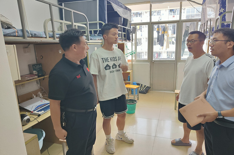 走访中,学院领导逐一查看新生宿舍,在学生宿舍内,学院领导与新生进行了愉快的交谈,了解新生的住宿和生活情况,并且关心地询问他们的兴趣爱好,家庭基本情况以及新生们到校后的感受,耐心听取学生们的反馈,对于学生所提出的问题现场给予了回复。陆林召勉励新生要珍惜大学时光,努力学习,同学间要互相交流及时沟通。周翔鼓励新生尽快适应大学生活,遇到困难及时联系老师,以良好的状态迎接大学生活。