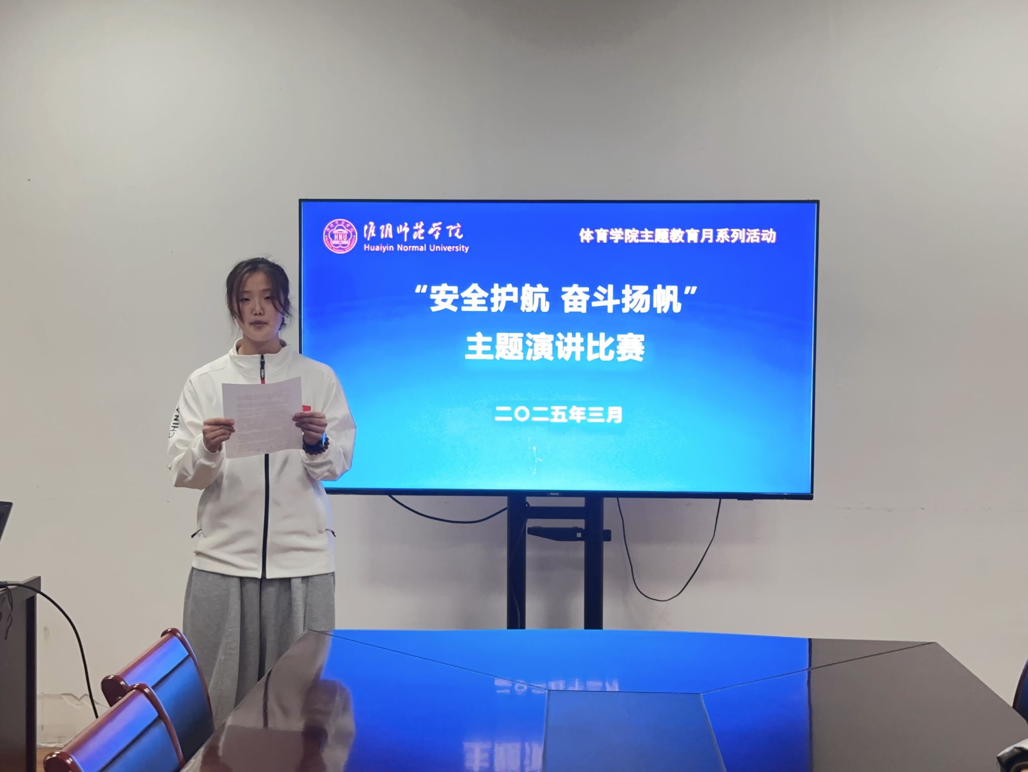 为积极响应主题教育月活动要求,进一步深化校园安全教育,激励青年学子勇担使命,砥砺奋斗,3月30日晚,星空体育官网登录开展了“安全护航,奋斗扬帆”主题演讲比赛。本次活动邀请专任教师朱世杰、辅导员纪群、院团委副书记陶胜男、解艺和陈爽担任评委。