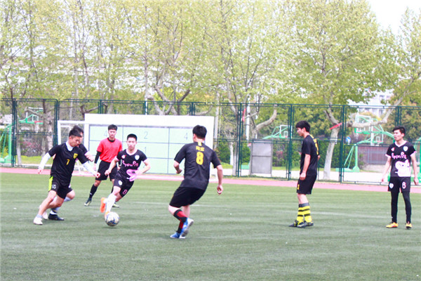 体院新闻网4月15日电(记者 招启雨 ) 4月15日中午,在足球场上1604和1705进行激烈的比赛。 双方友谊的握手之后,随着裁判的一声哨响比赛开始。双方有来有往,气氛紧张而激烈。切磋了球技,增进了友谊。得到了锻炼提升了自我。最终1604以4:1的成绩赢得了比赛。推进了赛程。