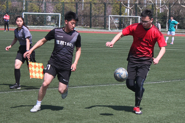 南场1601班和1803班,1601班是老队伍,不管是技术还是配合上,都稳压1803班,1803班虽然面对强队获胜希望很小,但是每一位球员都非常的努力,最后以比分4:1结束了比赛。北场1702班和1704班,1702班是一直以来的强队,在以往的比赛中都有很好的成绩,1704班虽然从一开始就被1702班压的很紧,但是每个队员都非常的积极,拼搏,最后比分13:0结束,1702赢得了比赛。