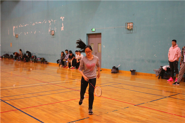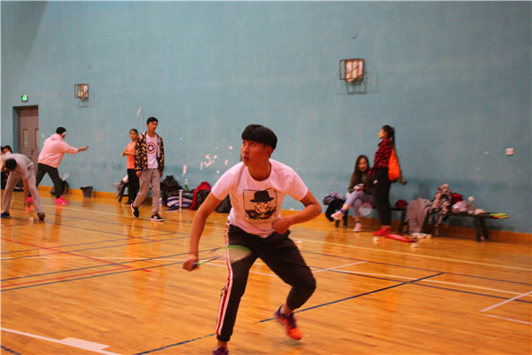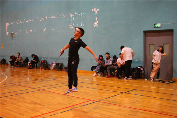 体院新闻网电(记者 邓婕)2018年4月12日中午12:30,体院1701班与体院1702班在羽毛球馆进行了一场比赛。队员们一次次用力的挥拍抽球都代表他们对比赛的重视,最后体院1701班与1702班以2:3的比分结束了这场比赛。