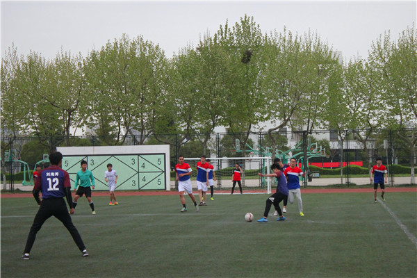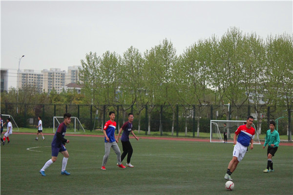 体院新闻网电(记者 邓婕)2018年4月12日中午12点30分体院1701班与体院1501班在操场展开了激烈的足球赛。入春后降温的寒冷并没有击退队员们的斗志,两队经过紧张刺激的角逐后1701班与1501班以1比2的比分结束了这场比赛。