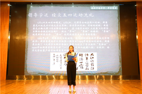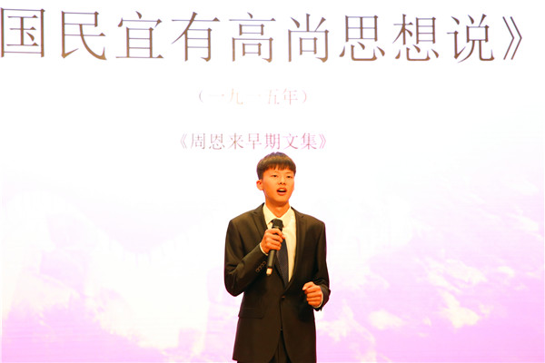 4月11日晚7点,星空体育官网登录于图书馆报告厅举办“周恩来演讲比赛”。此次活动以“学习周恩来精神,践行新时代使命”为主题,弘扬周恩来精神,加强对学生的人格教育、心理品质教育,提升学生道德品德,增强德育工作实效性。使学生从名人身上汲取更多的营养,并且应用在自己的实际当中,选择最好的学习方式。大会由桂旭、何紫微主持,参加此次演讲比赛的人员有吴奕赋、赵珍珠、姚毓璇、高思远、费薇等,星空体育官网登录全体学生参与此次活动。