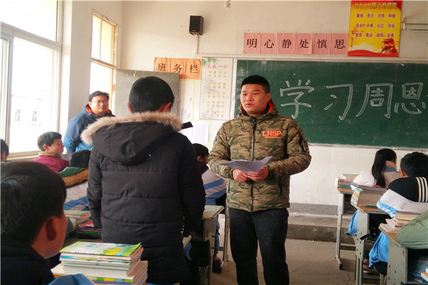 三树中学是星空体育官网登录周恩来班结对共建单位,三树中学八(1)班也被评为淮阴区“周恩来班”。下课铃响,同学们纷纷表示一定向周总理学习,做勤学、上进的新时代初中生。
