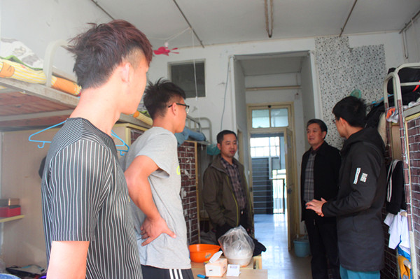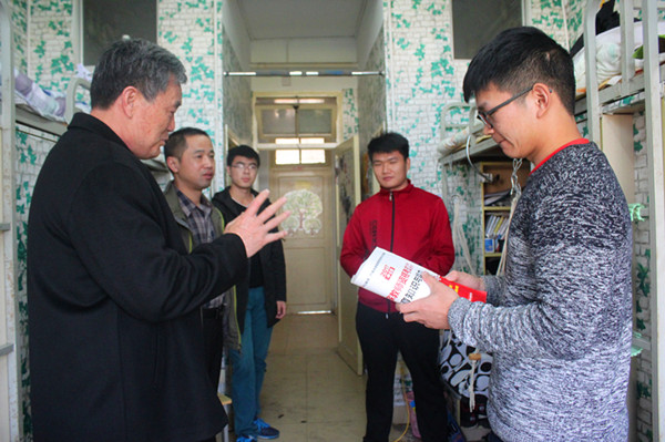 学院关工委委员杨洪辉老师来到学生自习教室和学生宿舍,亲切看望了2015级师范班的同学,并叮嘱大家考试期间要劳逸结合,轻装上阵;相信自己,充满信心;按时作息,保证睡眠。学院关工委副主任丁光明老师陪同。