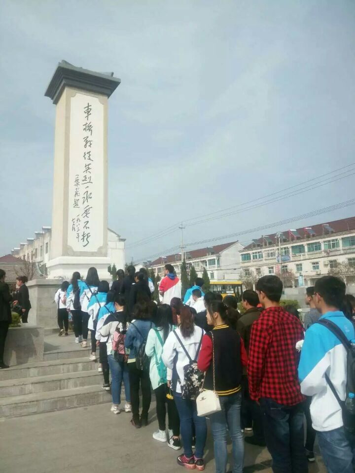 为悼念革命烈士,弘扬民族精神,2016年4月1日下午,星空体育官网登录1301班组织同学来到淮安市淮阴区车桥镇车桥战役纪念广场缅怀革命先烈。 在庄严肃穆的的纪念碑前,同学们聆听了车桥战役作战经过,并向革命烈士三鞠躬,表达对烈士6的沉痛悼念、缅怀之情。随后,同学们参观了车桥战役烈士事迹展览馆。车桥战役,新四军牺牲54人,消灭日伪军近千人,敌我伤亡比例如此之大,创造了抗日战争的神话。 此次活动不仅让学生体会到如今的幸福生活来之不易,更有利于学生珍惜以后的生活。