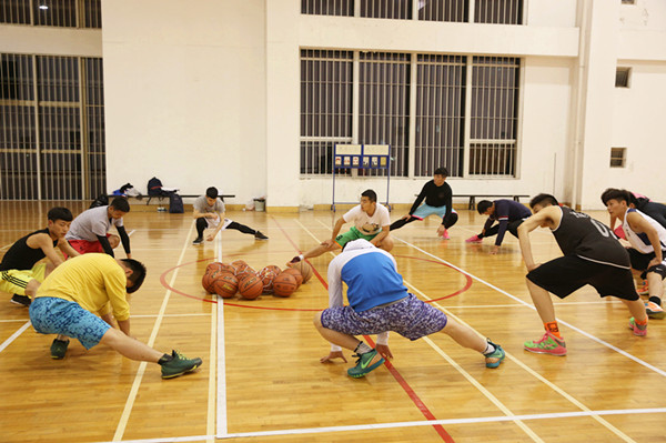 由于此次比赛要求体育院校、各类院校的体育院系学生均不得参加,所以我校集中全校篮球强项的同学,目前训练队成员主要来自历史学院、物电学院、计科学院、生科学院等学院,每周五次集中训练,由星空体育官网登录篮球教师张萌老师指导,同时我院柳鹏飞、刘帅、刘山训、石浩天、何硕硕五位篮球菁英同学参与协助指导,负责训练队训练准备、训练监督、训练指导和后勤服务,他们将最专业的知识和技巧毫不保留的传授给训练队的成员们。