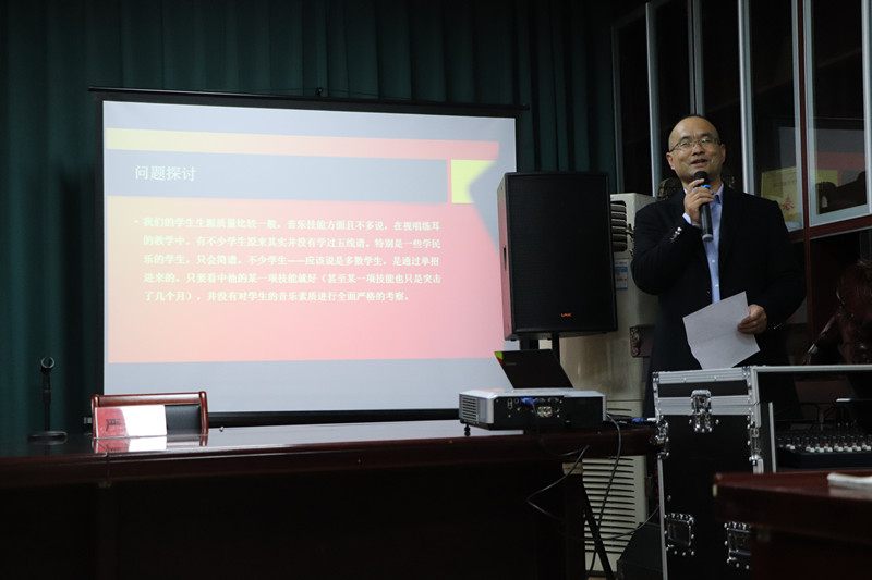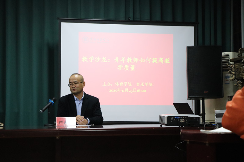 音乐学院严永福老师首先做了主题发言,向参加沙龙的年轻教师分享了他的教学体会,严永福老师主要研究领域是民族音乐学以及音乐教育学,通过理论研究与实践教学,他探索出了一套以身体律动促进音乐感提升的教学路径,也是通过这个教改行动,提升了课程教学质量,他提醒各位老师,要学会在教学中摸索适合自身课程特点的教学方法。