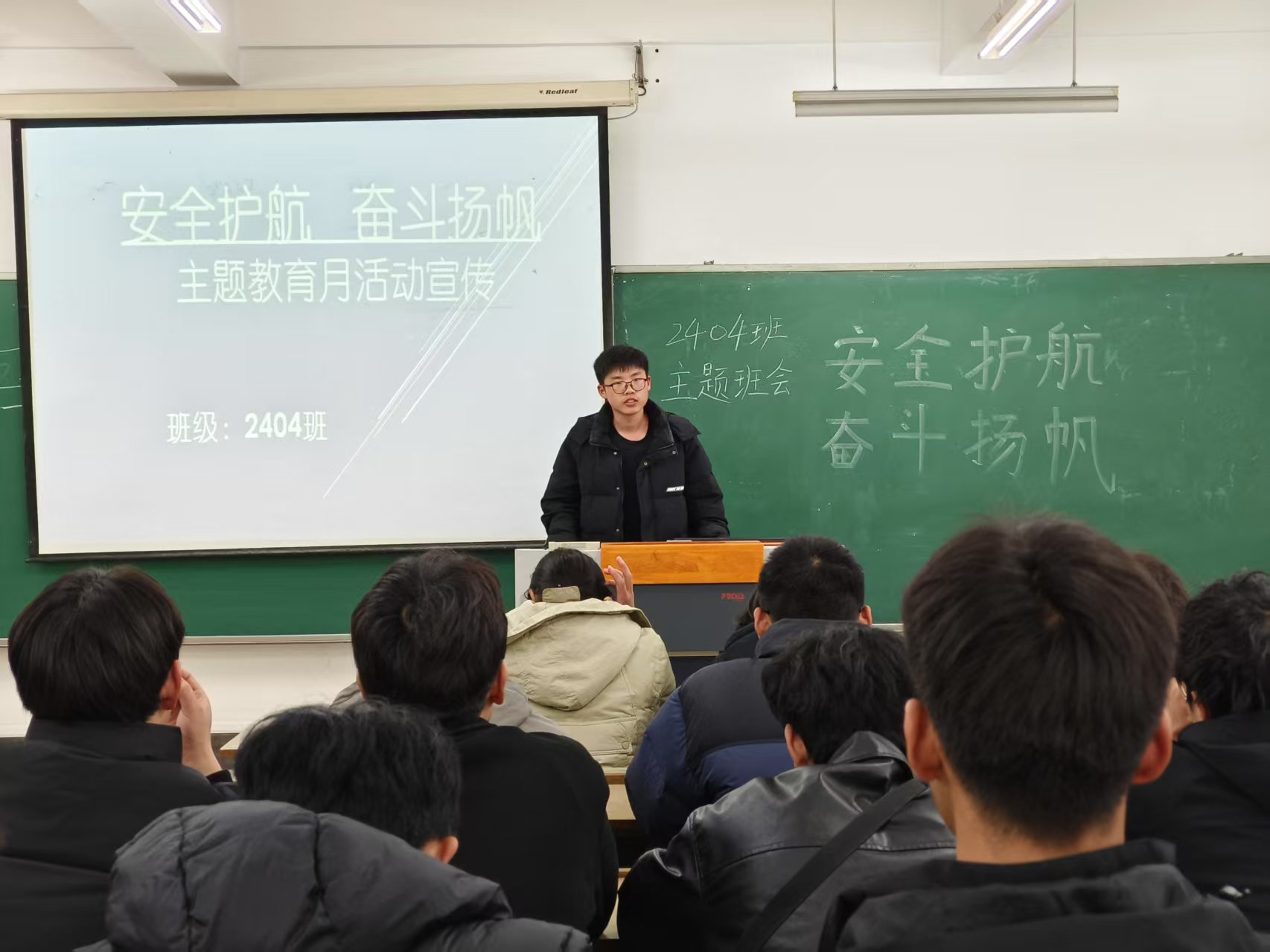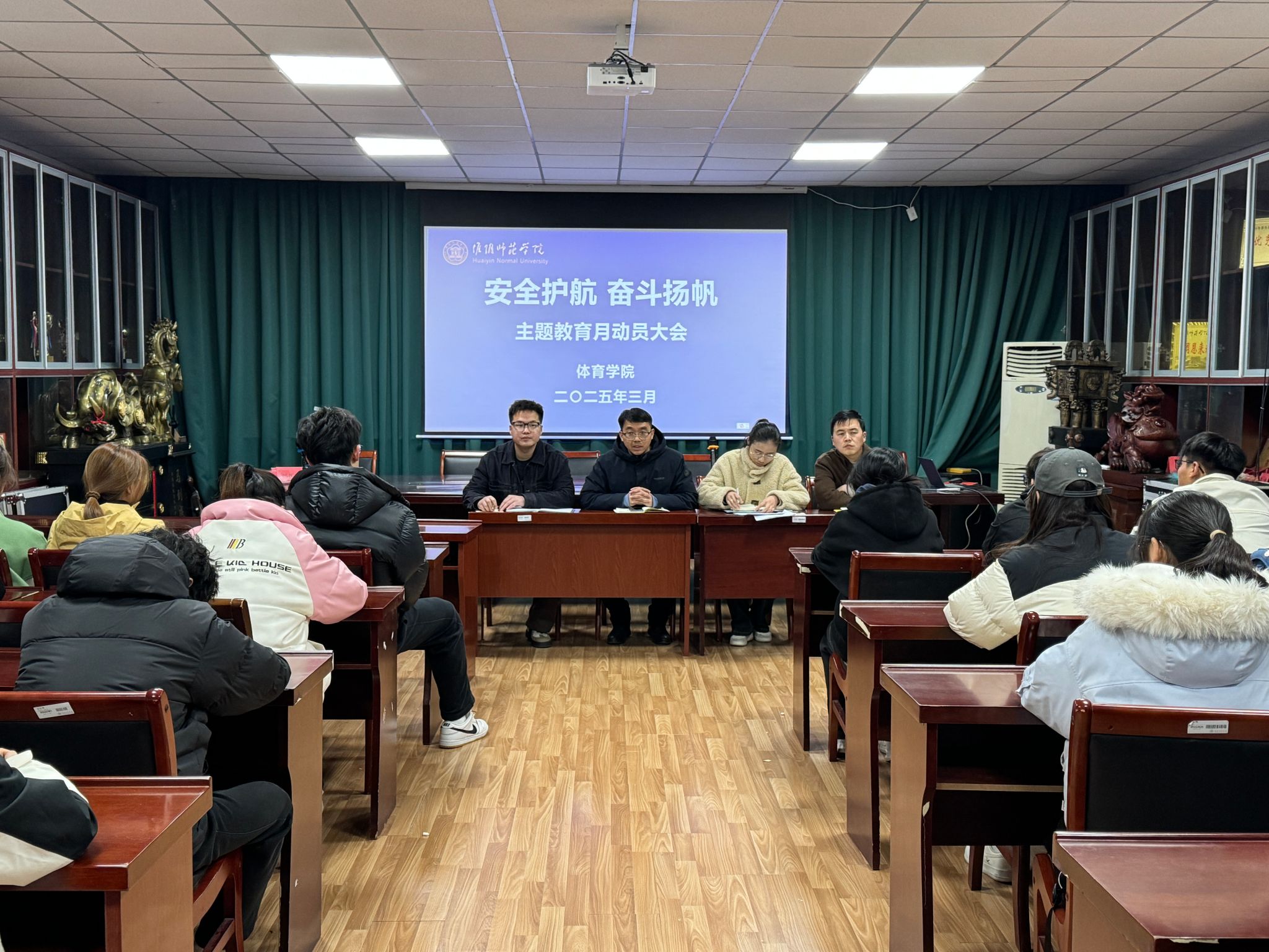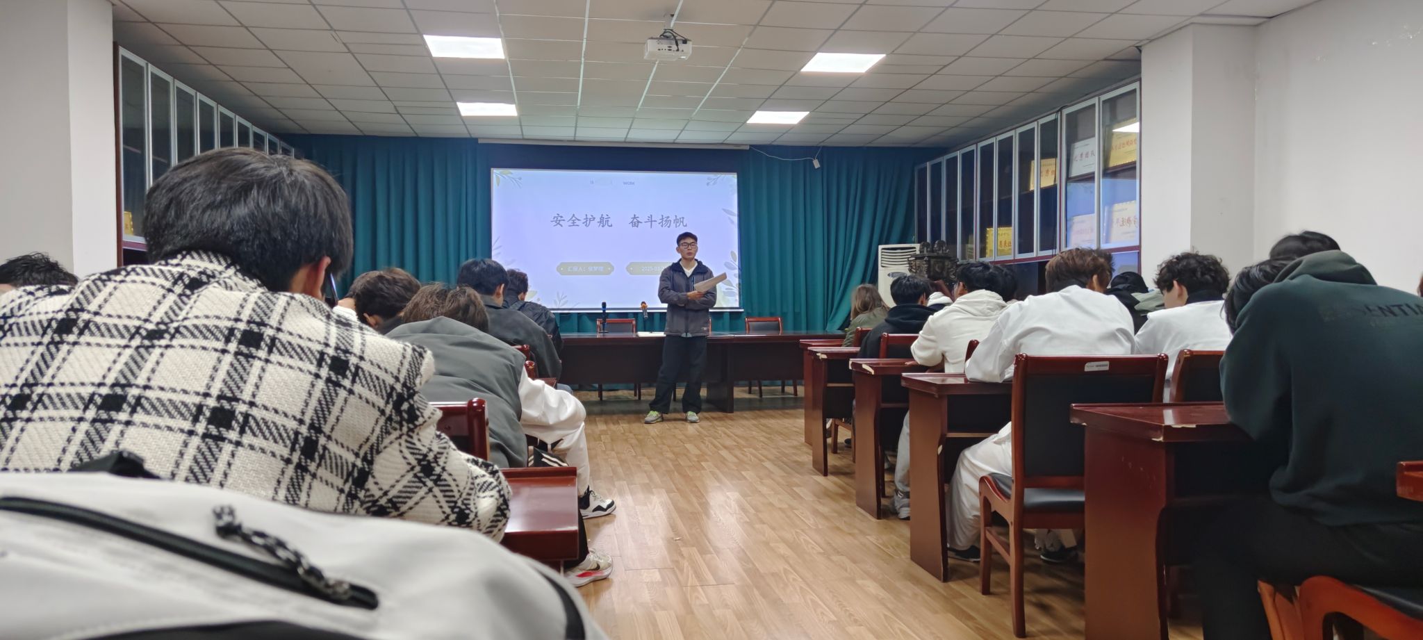 为进一步明确主题教育目标要求,充分发挥学生干部在主题教育月活动中的示范引领作用,学院召开主要学生干部工作布置会。院党委副书记出席会议并作动员讲话。他强调,学生干部是学院安全教育工作的重要力量,要以高度的责任感和使命感,积极参与安全主题教育活动,切实发挥桥梁纽带作用。各班级积极召开动员班会,重点讲解学院具体实施方案,积极营造浓厚的主题教育氛围。