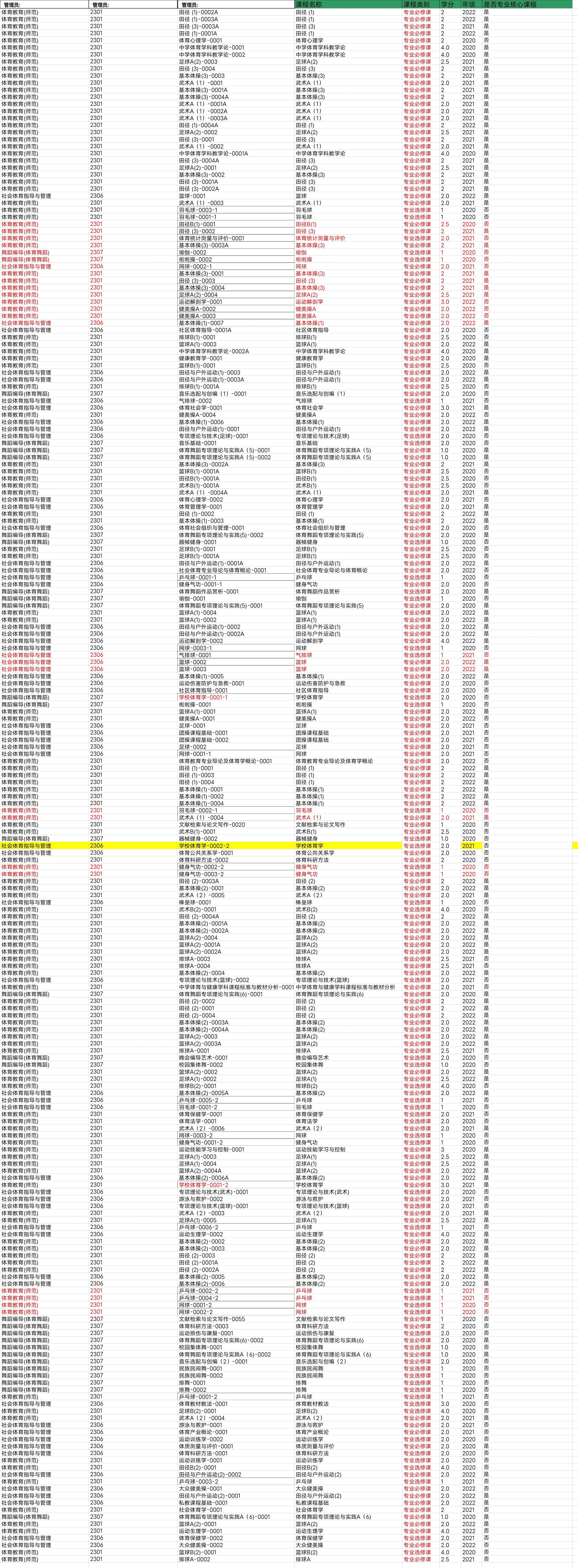 公体课表
